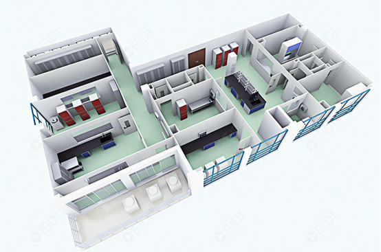 3、大气美观:要充分展示行业特点和地域风情,大气美观,注重色彩的搭配,空间的转换,环境的塑造,把针对不同功能需求差异化设计,满足人体、样品和仪器要求。